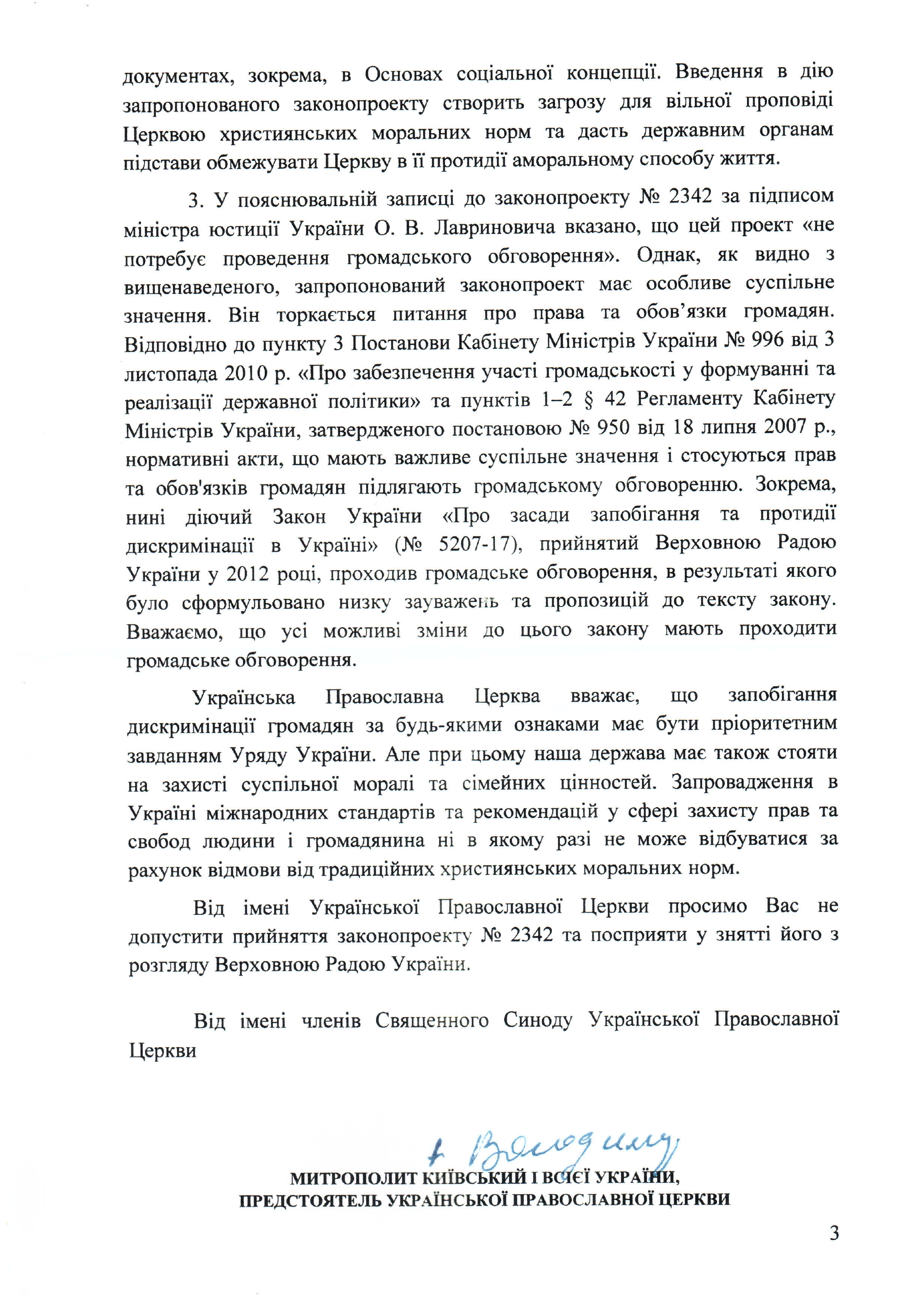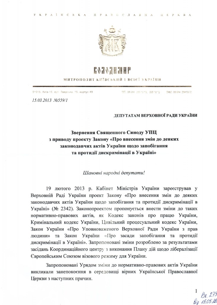 16Тра Коментування вимкнено Звернення Митрополита Київського та Всієї України Володимира щодо недопущення прийняття законопроекту стосовно протидії дискримінації, реєстр. №2342
