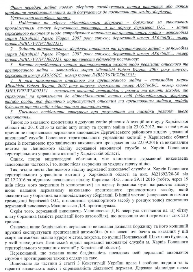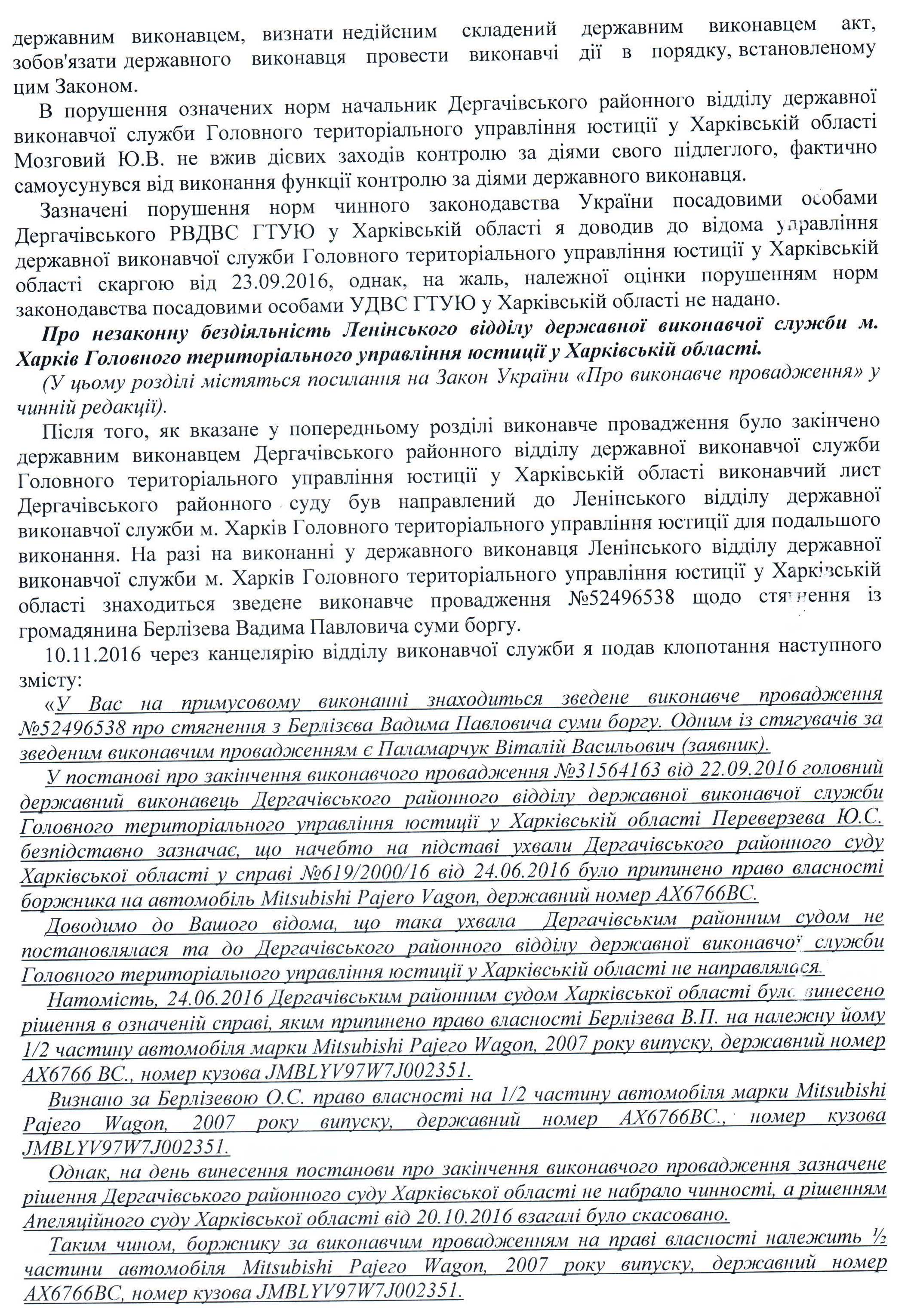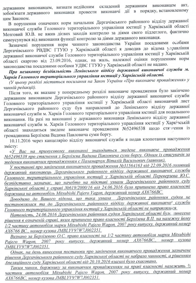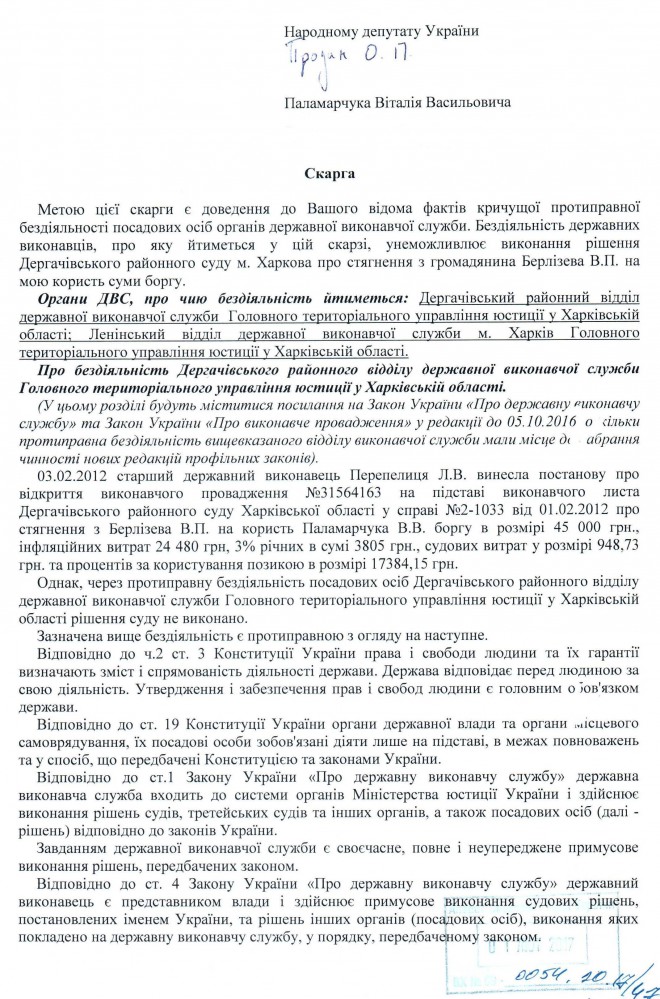 14Лют Коментування вимкнено Звернення В.В. Паламарчука щодо бездіяльності державних виконавців Дергачівського районного відділу ДВС та Ленінського відділу ДВС у м. Харків ГТУЮ у Харківській області