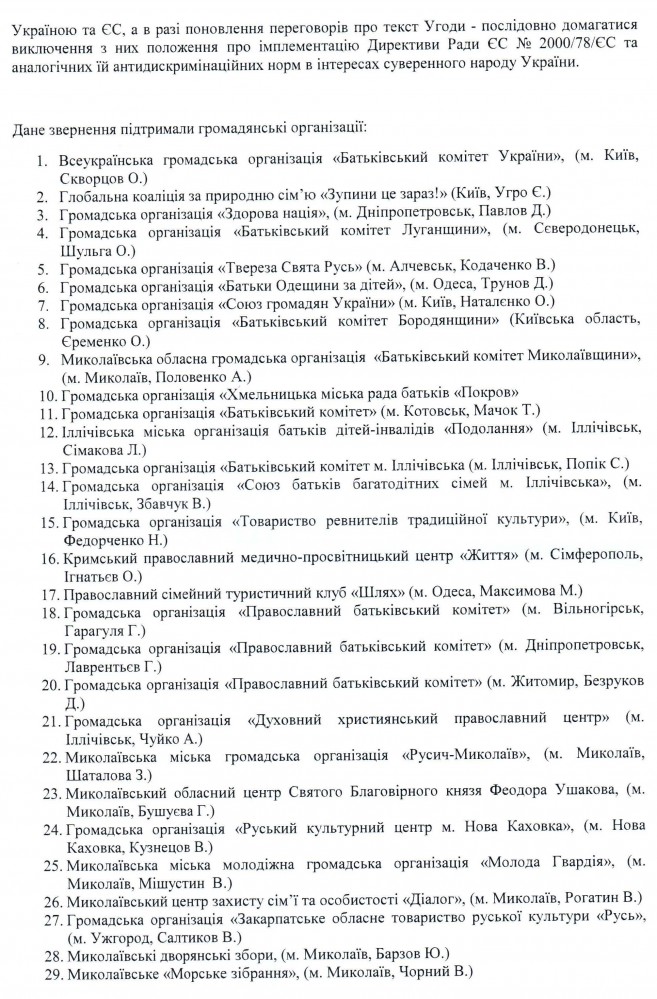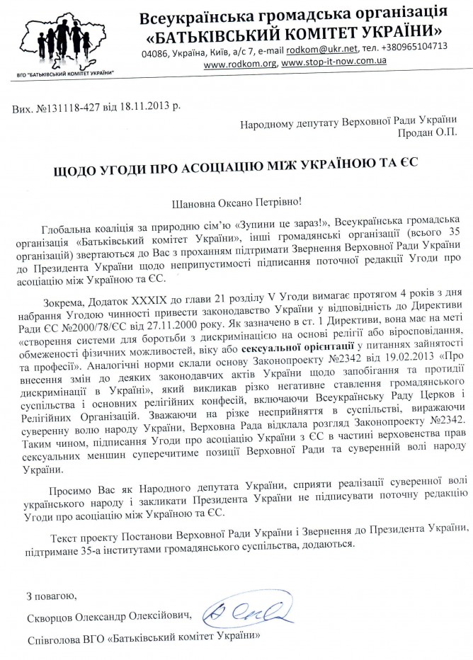 27Лис Коментування вимкнено Звернення ВГО “Батьківський комітет України” щодо Угоди про Асоціацію між Україною та ЄС та законопроекту, реєстр. №2342