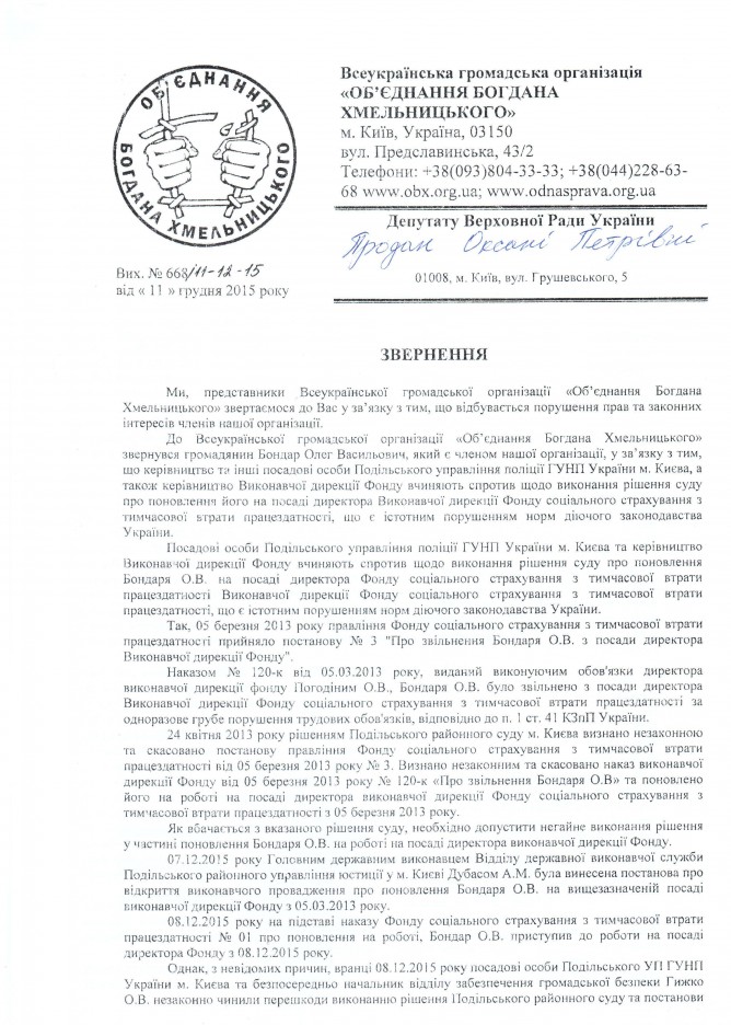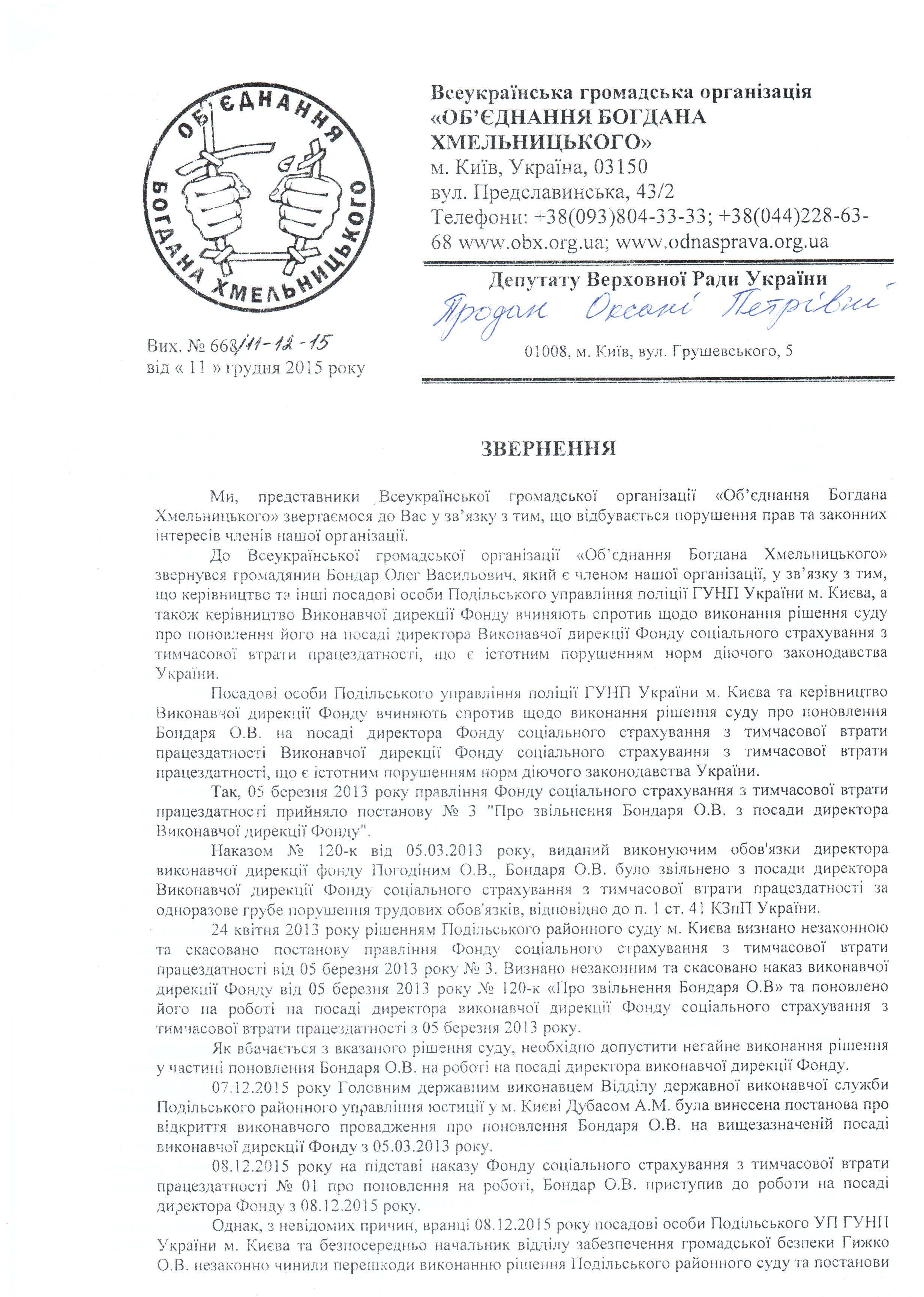 29Гру Коментування вимкнено Звернення ВГО “Об’єднання Богдана Хмельницького” щодо порушення законодавства посадовими особами Подільського управління поліції ГУНП України в м. Києві