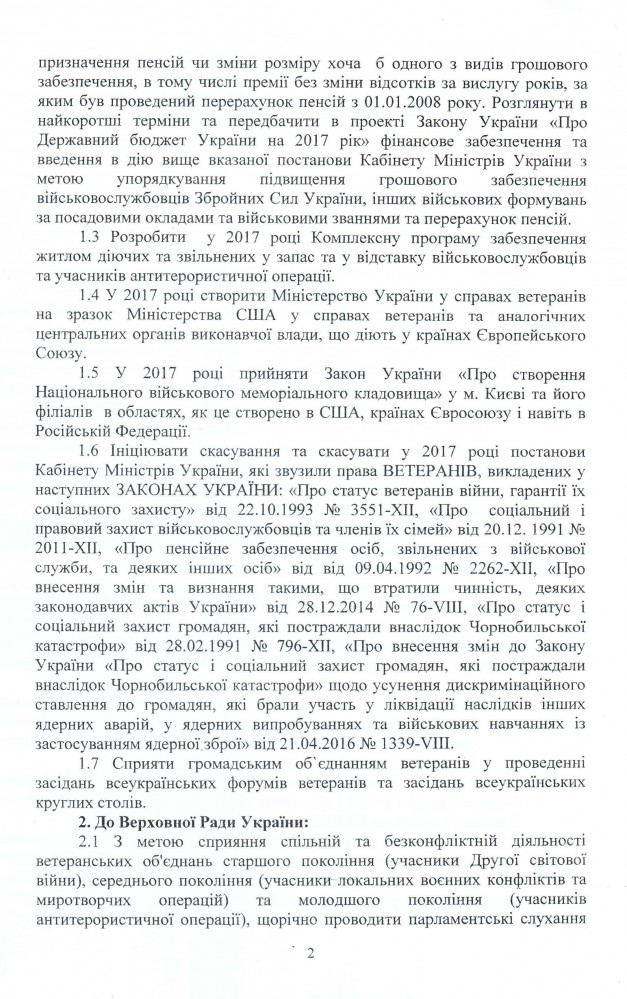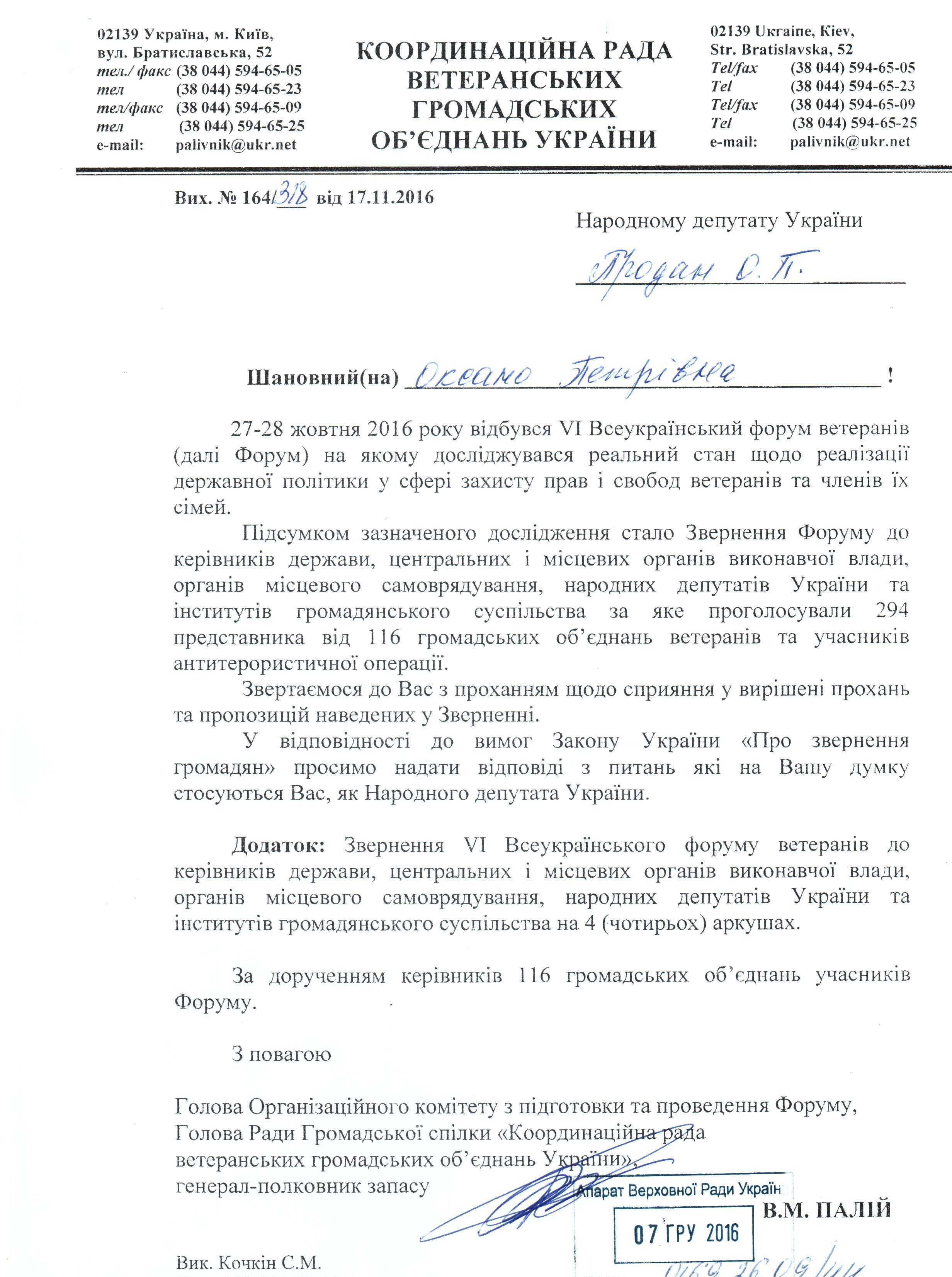 Головна > Верховна Рада України > Вхідна документація > Звернення VI Всеукраїнського форуму ветеранів щодо стану реалізації державної політики у сфері захисту прав і свобод ветеранів та членів їхніх сімей