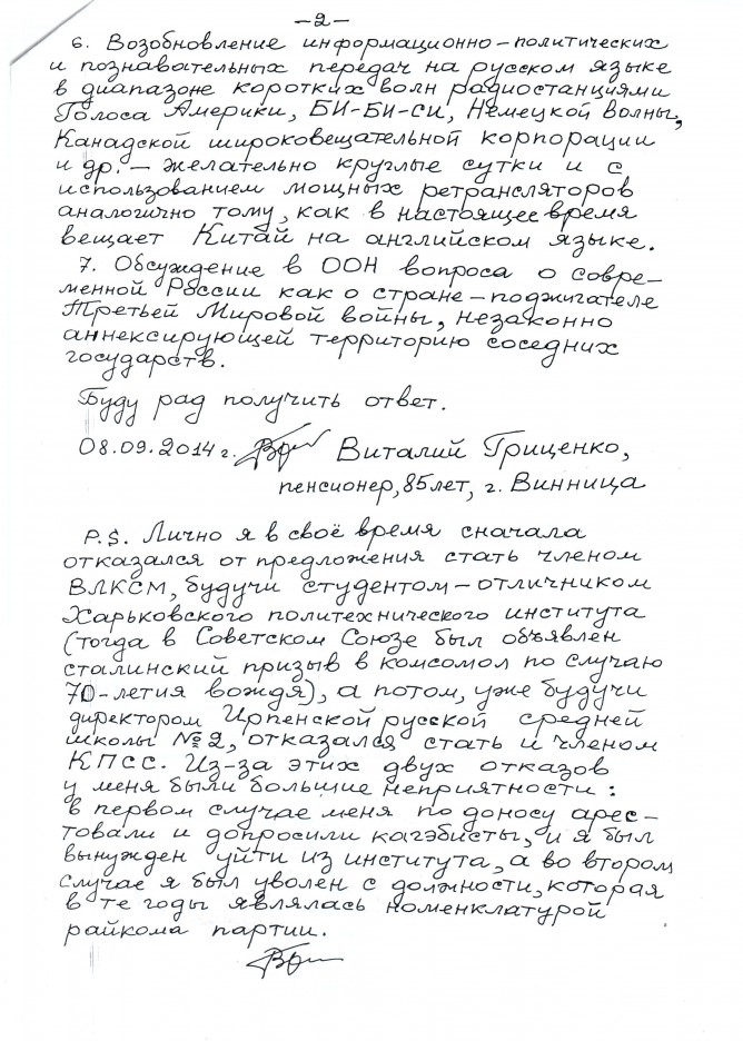15Жов Коментування вимкнено Звернення Віталія Гриценка до Посольств іноземних країн щодо надання допомоги Україні