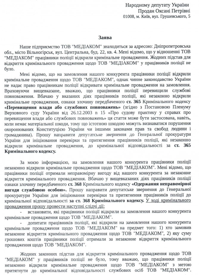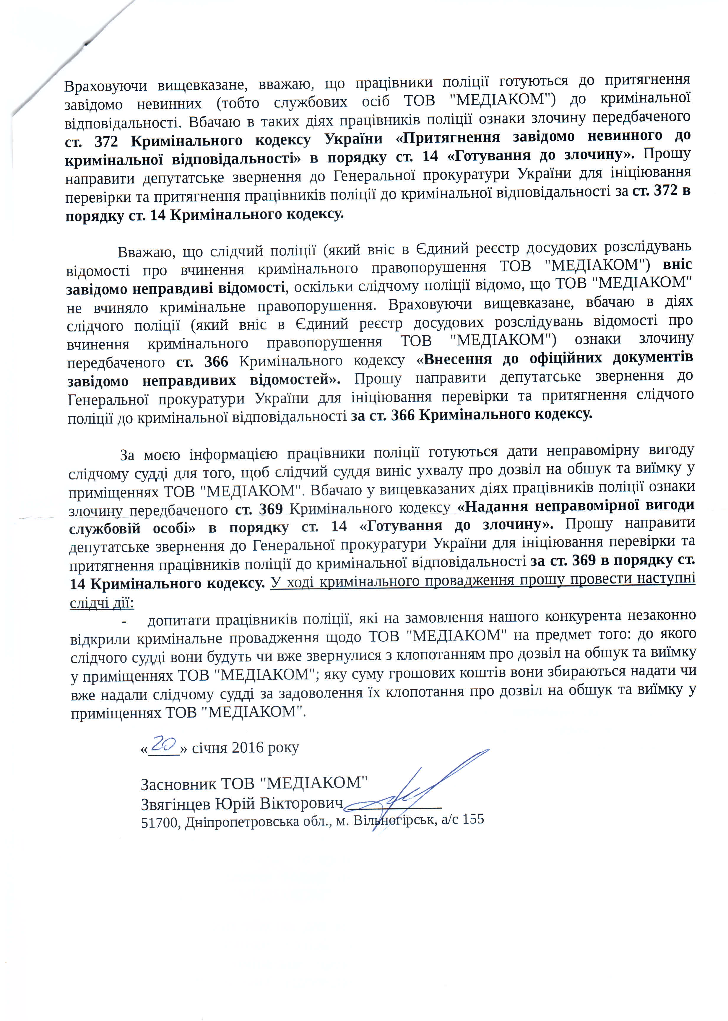 01Бер Коментування вимкнено Звернення засновника ТОВ “Медіаком” Ю.В. Звягінцева щодо порушення законодавства співробітниками Національної поліції України